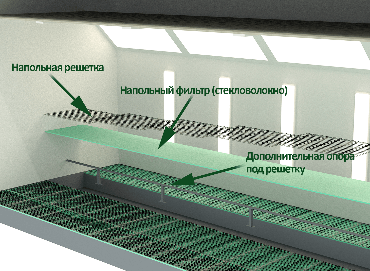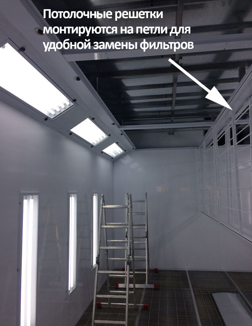 Встроенная трехступенчатая система фильтрации воздуха с угольной очисткой дает возможность очистить воздух от пыли и примесей на 95%. Камера оснащена верхним наклонным освещением на 8 светильников и боковым вертикальным освещением на 8 светильников.